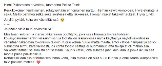 Koska minulla on matkaa noin 1,5 tuntia Hileen kotiin, niin minun pitää järjestää koirilleni hoitaja, että pääsen mahdollisimman usein katsomaan Hilettä ja pentuja sitten syntymän jälkeen.